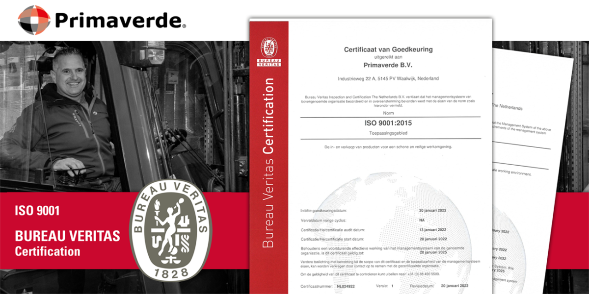 Primaverde est désormais certifié selon la norme de qualité ISO 9001:2015. La certification et les audits ont été réalisés par le renommé Bureau Veritas. Annemiek Loonen Furgler est responsable des opérations commerciales internes chez Primaverde. Elle considère le certificat ISO avant tout comme un signe précieux pour les clients et les consommateurs: Le label de qualité montre que nous faisons ce que nous promettons. La méthode de travail que Primaverde a mise en place avec son équipe n’a pas eu besoin d’être modifiée en quoi que ce soit. En fait, nous avons reçu des compliments sur la manière dont nous avons structuré et digitalisé nos processus d’affaires.