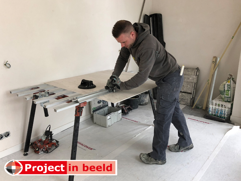 Elroy Kivits spesialiserer seg på flisearbeid. Når det kommer til fliser, er han veldig entusiastisk. For fliser i dimensjoner på 1,20 x 1,20 eller 2,40 meter, vender han ikke hånden rundt. Ikke engang for større størrelser. Han kan håndtere dem alle med et spesielt sagbord og spesialverktøy. Han jobber vanligvis i det mer luksuriøse segmentet på vegne av privatpersoner, byggentreprenører og innredere. Elroy hadde nylig to oppdrag hvor gulvet ble laget av levende betong. For å unngå fare, dekket han gulvet med PrimaCover Defend. Disse er ekstremt sterke filtplater laget av presset bomull.