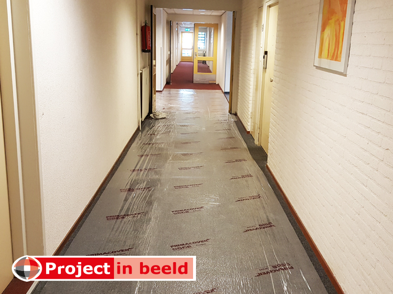 Bij de renovatie en verduurzaming van een appartementengebouw moest het tapijt in de gangen behouden blijven. Dit was namelijk nog lang niet aan vervanging toe. De aannemer en de gebouwbeheerder zochten dus een deugdelijke oplossing die gemakkelijk aan te brengen is. Ze hebben daarom gekozen voor PrimaCover Carpet. Deze zelfklevende tapijtfolie heeft de aanlooproute naar de appartementen gedurende de gehele renovatieperiode beschermd. Zonder dat schoengruis en de intensieve aanvoer van bouwmaterialen het tapijt konden beschadigen.